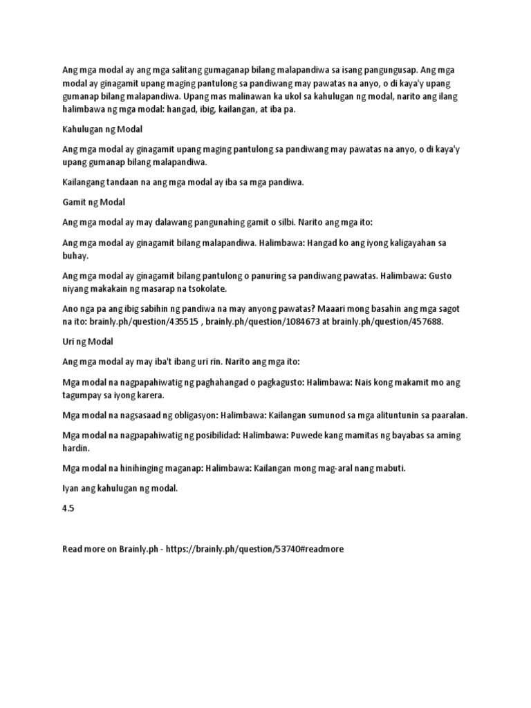 Ano Ang Modal At Halimbawa / Ano ang kahulugan ng alamat?