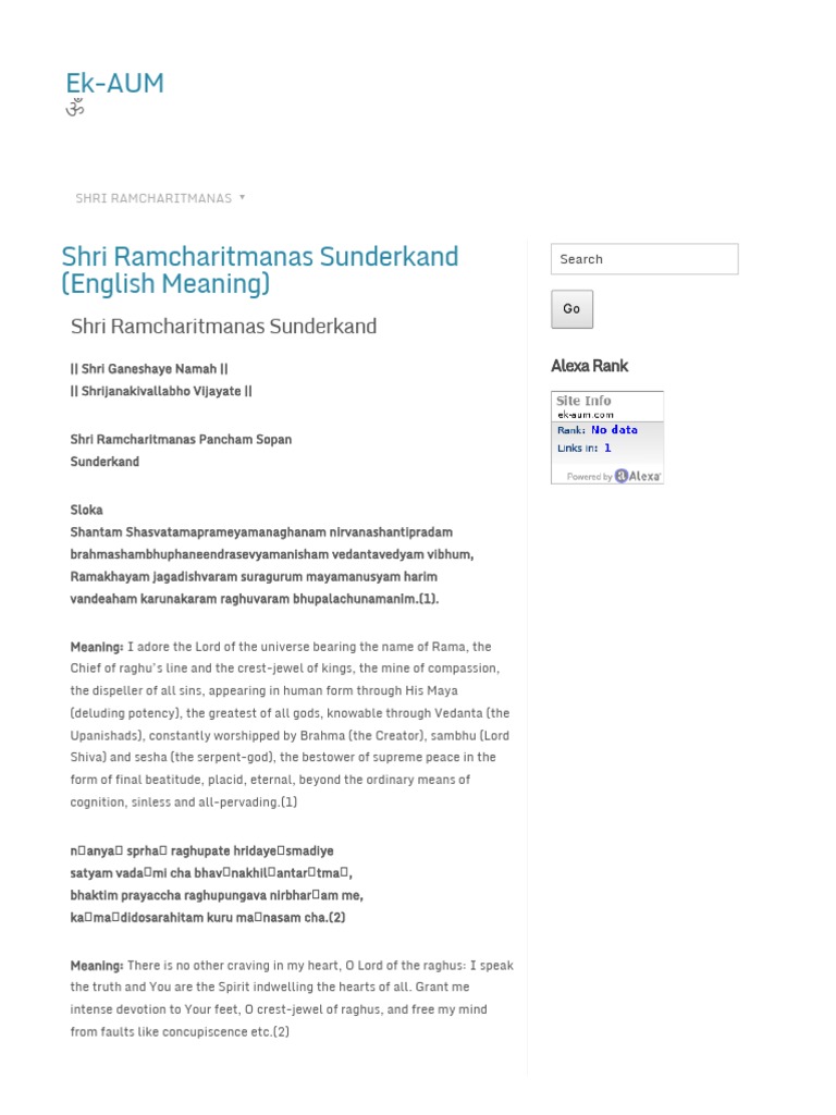 Sunderkand Paath In Hindi With Meaning Pdf - It helps achieve all that is good and auspicious, both worldly and spiritual.
